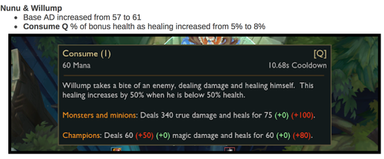 利齿撕咬(Q):造成伤害由20/30/40/50/60 提升至 20/35/50/65/80,AD加成由[0/10/20/30/40%] 提升至 [10/20/30/40/50%]