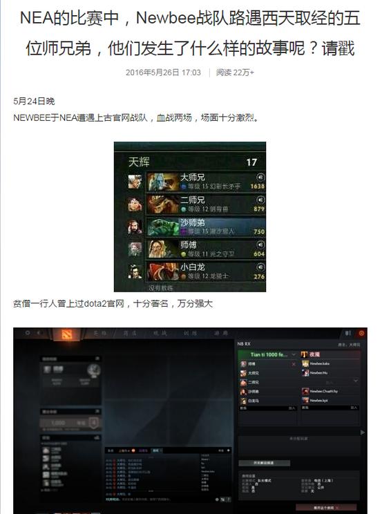 随着TI的开始,DOTA2的氛围也是达到了巅峰状态,一支在DOTA2官博火起来的西游记战队最近爆出了一部视频彩蛋。说起这支上古官网的战队还上过DOTA2官网,十分著名,有图为证。