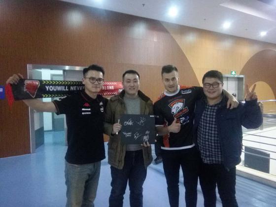 于是就有了这样一张合照,合影完毕当然没有忘记留下偶像的签名。热情的pasha也还以大大的拥抱欢迎这位忠实粉丝。亲切、热忱,就是这些电竞选手们最为真挚的内在。