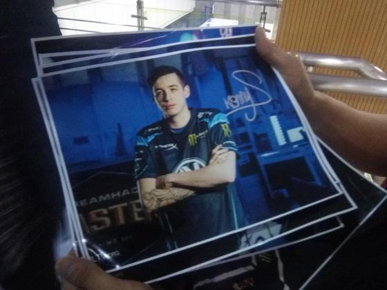 作为CS:GO的忠实粉丝,自然不过放过众星云集的WESG全球总决赛。在前往现场之前,葡萄就已准备好满满一打高清照片和签名笔,准备找到这些选手大干一场,“每张照片都是好不容易从网上找来的高清照片”——他把这些已经签好名的战利品一张张罗列给小编看:“这是kennyS,这是铁饼,这是MO。。。“如获至宝般的他一一指出这些选手对他的特殊故事。