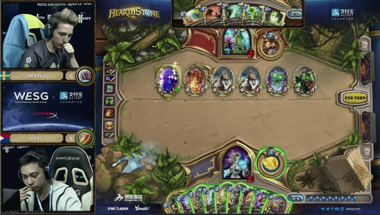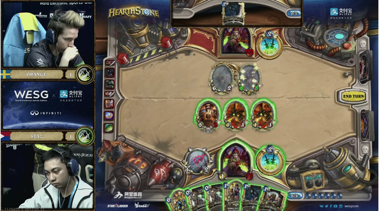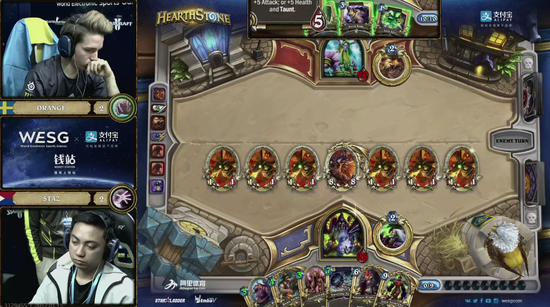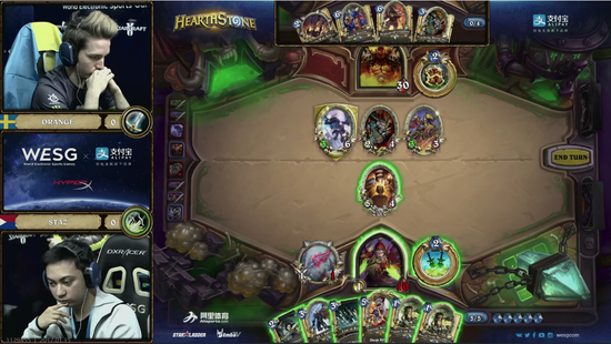 今天,WESG来到决赛日,炉石项目决赛是来自瑞典的名将Orange和来自菲律宾的选手Staz。在此前的比赛中,两人分别过五关斩六将,最终会师决赛,争夺WESG炉石比赛冠军奖杯和20万美元的奖金。