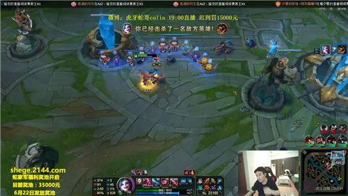 原来是虎牙人气主播蛇哥在游戏中撞上了网吧老板,当天蛇哥继续套路玩法,先让对面几个人头,等他们把自己家的防御塔都推掉,蛇哥和队友就在泉水防御。蛇哥和几位队友玩的都是擅长的英雄,对面根本没有突破口。蛇哥还趁空闲,用眼摆了一颗心,闪闪发光,气的敌人直跺脚。