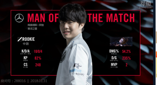 值得一提的是Rookie的发条第一局打出了10杀0死4助攻的完美战绩,也打出了全队百分之五十以上的伤害。