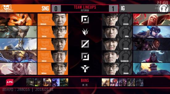 1月31日,LPL第三周第三天的首场比赛SNG迎战IG战队。最终IG2比0轻松的拿下了SNG。