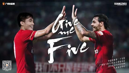 在这两句感染力十足的口号基础上,广州恒大官方目前总共已经发布了479张比赛海报,这些海报不局限于单一的形式,有的利用一语双关,表达出队员击掌和拿下五冠双重意思的海报。