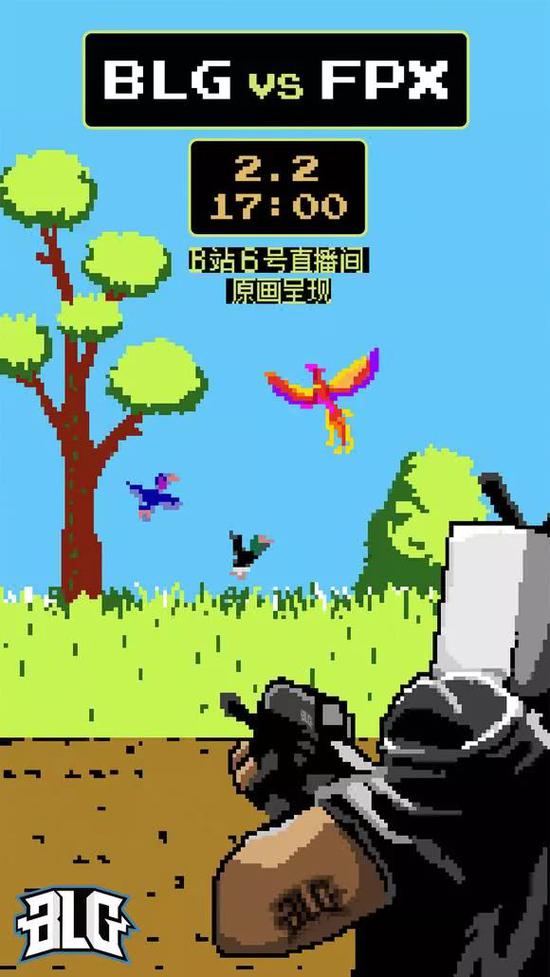 BLG在对阵FPX前,又发了一张《打鸭子》怀旧海报,与原游戏不同的是,天上多了一个凤凰,而FPX俱乐部的LOGO恰好就是只凤凰。