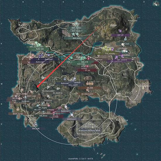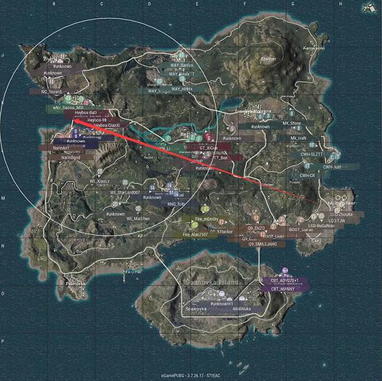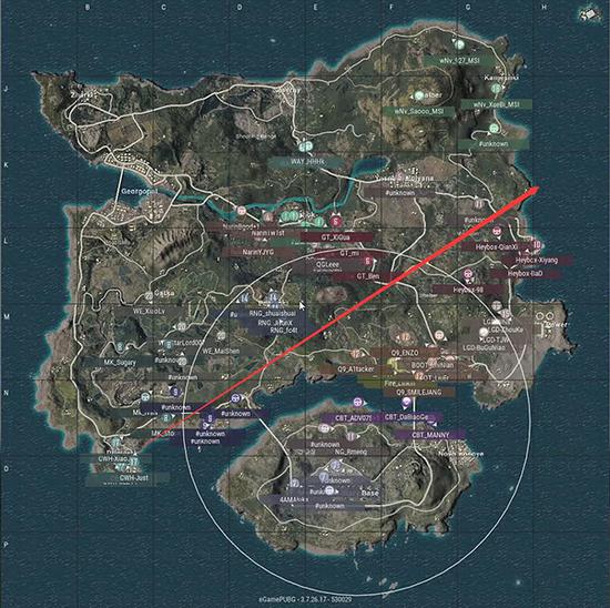 决赛圈刷在了G港右下侧,RNG占据了圈内唯一的房区作为掩体,清理了从G港出来的所有队伍,除开满编的RNG,其他剩余队伍均只剩一名独狼。