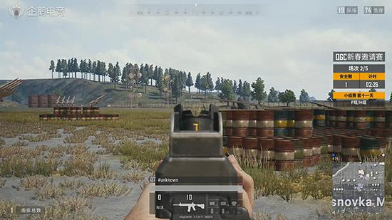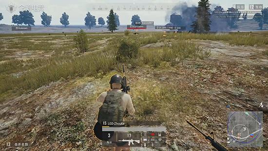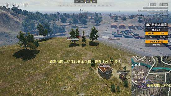 决赛圈刷在了P城左下方的麦田,MK独狼被发现后很快阵亡,场上只剩3支队伍11名队员。