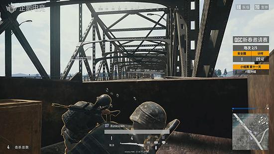 由于圈相对极端,4AM在快速搜完机场后,选择堵桥,很快遇到了想要过桥的WE战队。