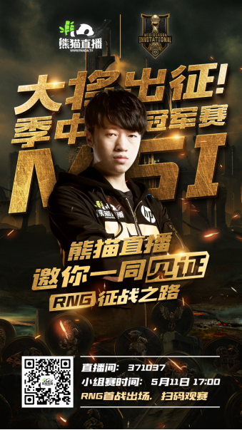 在夺得LPL春季赛冠军后,RNG追逐冠军的脚步没有停下。5月11日17:00,MSI季中邀请赛小组赛的战斗即将打响,RNG将在揭幕战中迎战东道主FNC战队。作为和RNG签约的直播平台,熊猫直播邀你一同为RNG助威,为LPL加油!直播间:371097