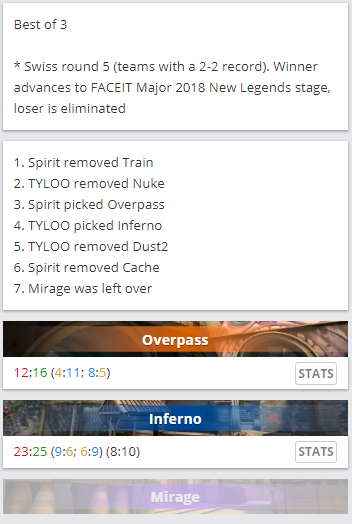 FACEIT Major第四个比赛日正在进行中,第一轮比赛为中国战队与独联体劲旅Spirit的较量。本场BO3可谓两支战队的生死战,胜者出线,败者淘汰。