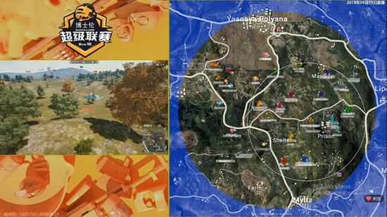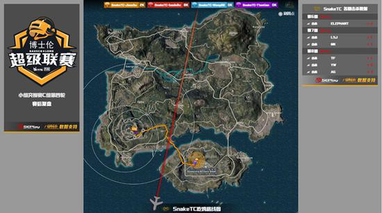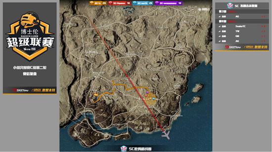 本局航线从西南往东北,从P港附近飞往S港右方。航线比较平均,大部分资源点都能到达。SC选择了P城,Lstars选择了N港,安全区刷在了以Y城为中心的地图右上部区域。
