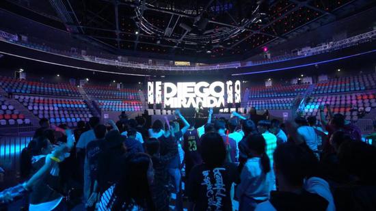 入夜的电竞馆,立刻变换成电音场馆秀。特邀的百大DJ:Deigo Miranda现场激情燃爆,打碟、欢呼的热浪嗨爆了整个场馆!