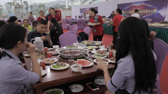 傍晚的临江火锅宴和小吃街,吸引大批结束观战的观众举杯换盏,赏月、赏美食好不惬意
