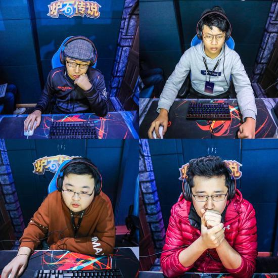 最终,“Xhope”(左上)以3:2击败“比利君”(右上)获得“2018 Esport Superstars炉石传说”全国总冠军。“神秘人”(右下)、“冰可乐丶菜喵”(左下)分别获得第三名和第四名。