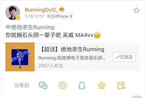 而MA4战队的VV则因为比赛中阴掉了跑男,而被微博亲切问候了一波。不过,VV也没能笑到最后,天道有轮回,他被WUDI带走的同时,WUDI也凭借着正义之光成功吃鸡。