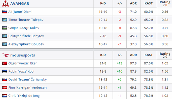 mousesports vs AVANGAR 2-0 (Train 16-8;Dust2 16-7)