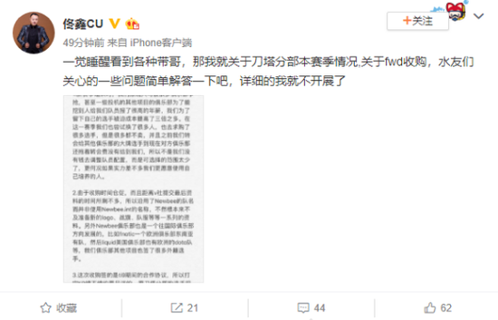 在昨天上午,Newbee俱乐部官方宣布收购了前FWD的战队成员,这支北美战队也将以Newbee之名征战TI9。以这样的方式进军TI,自然会面对种种质疑。在今日凌晨,Newbee俱乐部CEO“佟鑫CU”就对此做出了说明,在微博中他提到了赛季初的组队、未使用Newbee.int的原因以及ti期间不会换人等内容,以下为原文:
