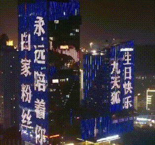 九天狐生日会当天,粉丝给九天狐送上了一个视频礼物。很多城市广场的大屏上都印着这样的话语:“快手不倒陪你到老,九天狐生日快乐,白家粉丝永远陪着你。”
