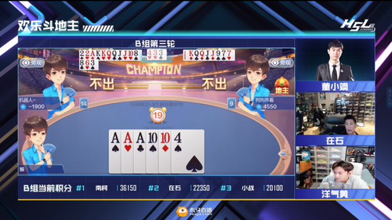 B组比赛说是“神仙打架”都不为过。选手的海量魔幻操作现场“打”了不少解说的脸,两位解说自嘲脸肿5斤!在石与洋气黄两位平日直播就“骚话连篇”的主播碰在了一桌,全场各种插科打诨,让人不止一次怀疑这两人不是来打比赛的,而是说相声的,节目效果满分!第一轮结束后,解说与两位主播连麦采访,两人甚至为谁先发言而开起了辩论会。