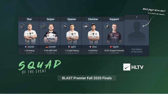 随着Vitality在今日凌晨的决赛中2-1击败Astralis收获冠军,HLTV也根据数据公布了本届赛事的“最佳阵容”,让我们看看在每个位置上都是哪些人当选吧。