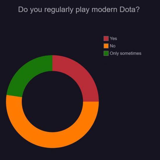 三分之二以上的玩家都是DOTA的老粉丝了,不过有趣的是有一些玩家似乎是刚接触DOTA就开始玩怀旧服。半数玩家两种版本都玩,但只有四分之一的玩家是坚持在玩正式服的版本。如果V社推出官方版的怀旧服,绝大多数玩家都会表示感激——当然V社会不会这样做就另说了。
