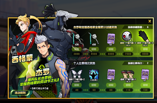 活动分为两部分:全服累计创建奖励和比赛场次奖励。