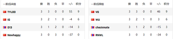 随着VG 2-0战胜Renewal,PWL S1的第一阶段小组赛正式宣告结束,A组晋级的两支队伍分别为TYLOO与iG,而B组晋级的则是VG与WingsUp。