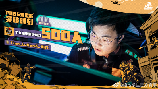 Tianba战队中,同样作为老将的LuRenA,也在本周达成了累计淘汰500人的数据,开启“登峰造极”成就。作为队内灵魂人物,LuRenA本周的亮眼发挥不仅让他吸粉无数,也让Tianba战队稳中求进,期待他接下来的精彩表现。
