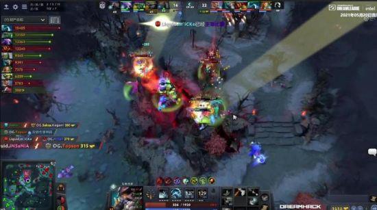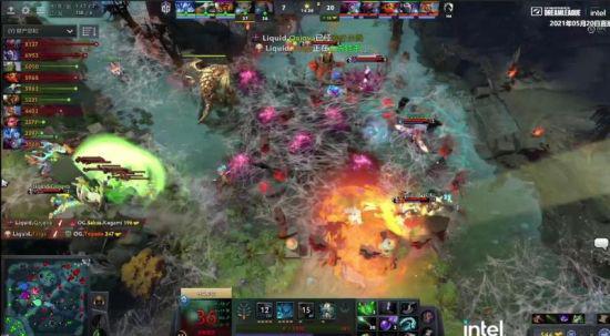 之后Liquid找到机会猛犸大招虚空,老奶奶再接一手饼干,虚空被控到死阵亡无法买活,随后OG众人被逐个击破,打出GG。