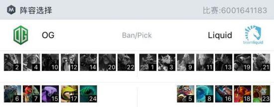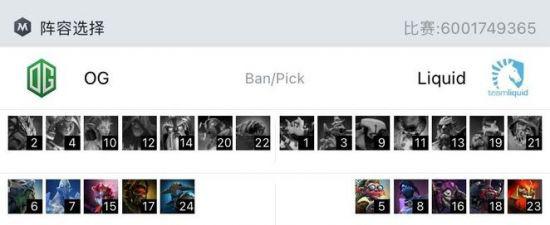 OG天辉,选择斯温小小兽王三核,花仙子和冰魂辅助。Liquid夜魇,选择玛尔斯圣堂蜘蛛三核,电炎绝手和戴泽辅助。