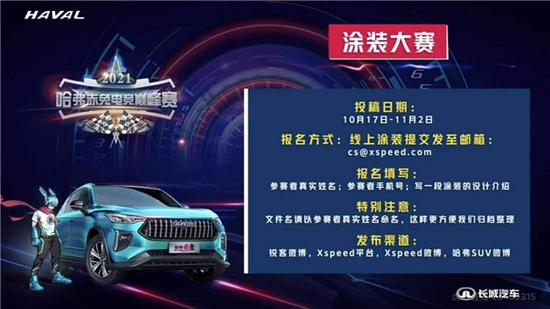 BTW:还有一个重磅信息要宣布——2021哈弗赤兔电竞巅峰涂装大赛已经正式启动,诚邀各路英雄豪杰创意共享、携手筑梦,绘制出你心中的梦想“涂”腾。我们将为获胜选手准备丰厚的现金奖励以及一份“神秘大奖”,欢迎关注锐客微博、Xspeed平台、Xspeed微博、哈弗SUV微博,获取格式要求、奖项设置、创作素材等具体信息。
