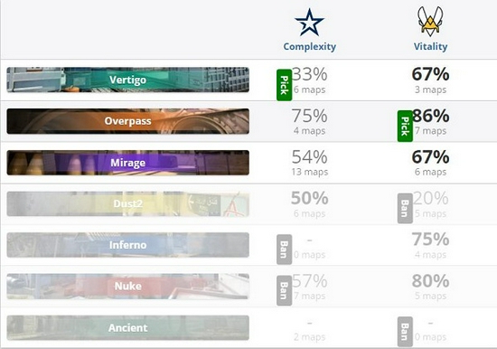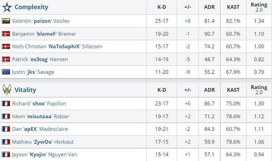 Vitality 2-1 Complexity(Vertigo 16-6;Overpass 9-16;Mirage 16-12)