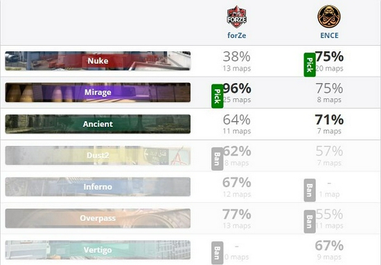 ENCE 2-0 forZe(Nuke 16-5;Mirage 16-11)