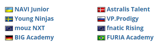WePlay青训联赛S2的8支参赛战队如下: