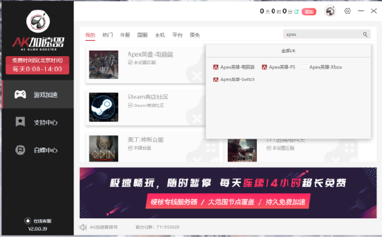 AK免费加速器(复制即可快捷下载):https://www.akspeedy.com/html/download/speed/index.html?channel=PV00005