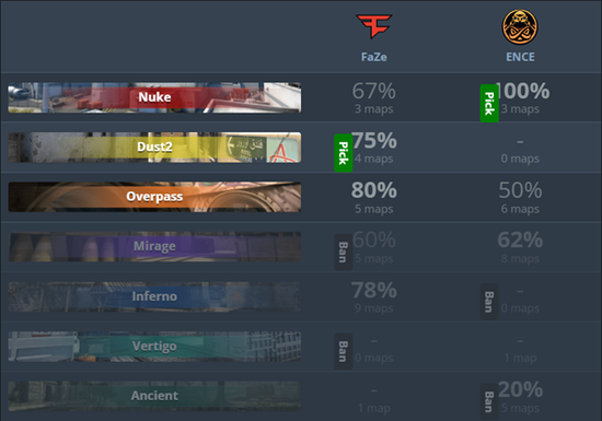 FaZe 1-2 ENCE(Nuke 16-13;Dust2 7-16;Overpass 13-16)