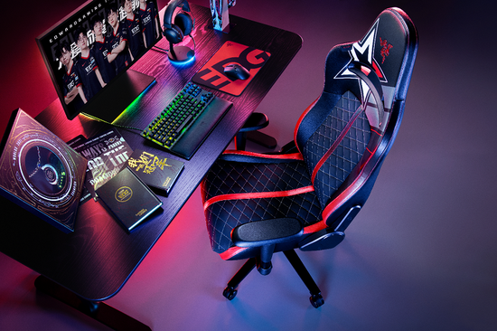 水神X EDG限定款电竞椅在雷蛇水神X电竞椅的基础上,融入众多EDG电子竞技俱乐部相关元素。椅身整体采用EDG经典黑红配色,背面印有EDG经典骑士之“誓”LOGO,周围环绕EDG5名冠军成员的签名,椅背正面印有一颗红白相间的五角星,见证战队首夺S赛冠军,为“一星荣耀”加冕。
