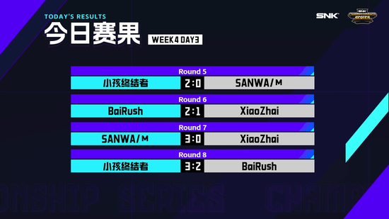 在10月6日进行的周冠军赛中,备受关注的选手“小孩”以3:2险胜选手“BaiRush”。
