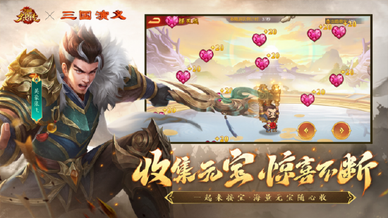 还有趣味十足的接宝活动,海量元宝如璀璨流星般纷纷洒落,只需动动手指,就能轻松将它们收入囊中,为你在游戏里的畅行无阻提供雄厚的经济支持,助力你迅速提升实力,开启热血征战之路。主公在参与各类精彩纷呈的小游戏之后还可以点亮趣味成就,获得游戏内的活动代币【浪淘云锦】来免费兑换商店内的鞠躬尽瘁·变身卡哦!