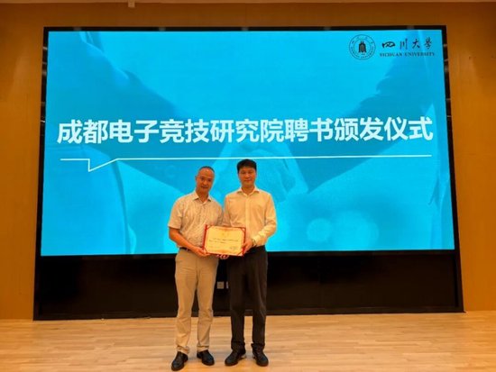 讲座互动环节,郑夺博士与四川大学师生就电竞教育、职业化路径及国际标准制定等话题进行了热烈交流。四川大学体育学院院长向勇教授在活动后为郑夺博士颁发聘书,聘请其担任成都电子竞技研究院院长。这一合作被视为英雄电竞与高校在电竞领域产学研结合的重要举措,但更值得关注的是,郑夺博士早已于2023年4月受聘为中国电竞产业研究院专家,这一角色为其在电竞战略规划、政策咨询和国际标准推动方面提供了更广阔的平台。