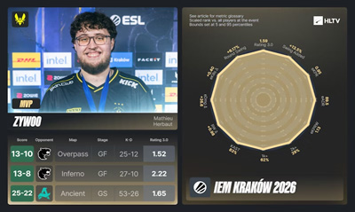 IEM克拉科夫的权重远不止于此:2月2日,正值赛事第一阶段结束之际,四项颇具分量的赛事——BLAST鹿特丹公开赛、PGL布加勒斯特、IEM亚特兰大及CS亚洲锦标赛——同步迎来了邀请截止日期。因此,本届克拉科夫成为了各队在截止日前最后冲刺VRS的黄金跳板。