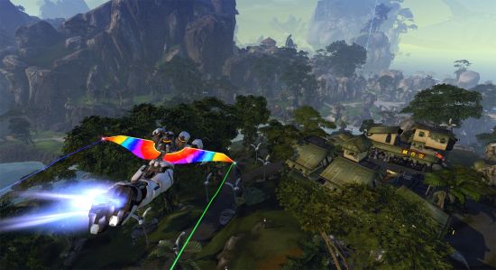 这种独一无二的滑翔踏板有着醒目的视觉效果,会喷射出五光十色的能量火花! 当玩家站上踏板时,它会像普通踏板一样将玩家弹上天空,但当那如彩虹般华丽的翅膀展开时,会给你的滑翔机翼额外的推进力,持续一秒钟。你可以利用这一秒钟时间开始快速滑翔,或者爬升到更高的空中。