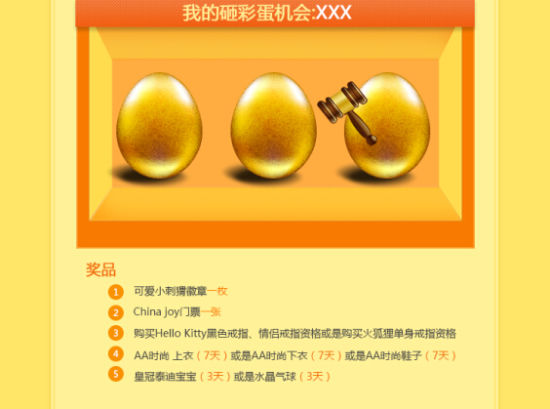 即日起至7月24日24时,凡在劲舞团商城单笔消费满2000M币的玩家将获得一次砸彩蛋机会,单笔消费满2000M币的倍数即能获得相应倍数的砸彩蛋机会。