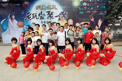 现场人员统一穿古装出席活动,真实还原大话2经典赌坊的盛况