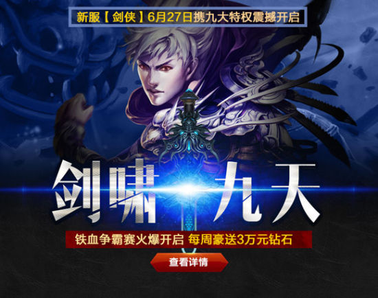 世界风云,皆从绿荫而起,铁血争霸,群雄集聚剑侠!6月27日双线四区开启新服【剑侠】,群雄逐鹿共同竞技朱雀、麒麟及青龙三城,与服务器同步开启铁血争霸赛!