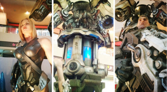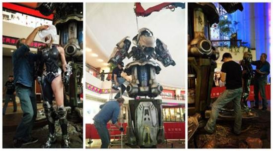 这座主题雕塑由数个部分构成,占地巨大,耗资100万美金,由好莱坞金牌团队打造。雕塑取材于Firefall的首部CG预告片,完美还原了片中两位身处外星球的游戏内人物以及一台巨型挖掘机具。同时更辅以声、光、电、烟雾效果等现代特效技术,完美重现了游戏内经典场景,成为了东方明珠内一抹新的风景。