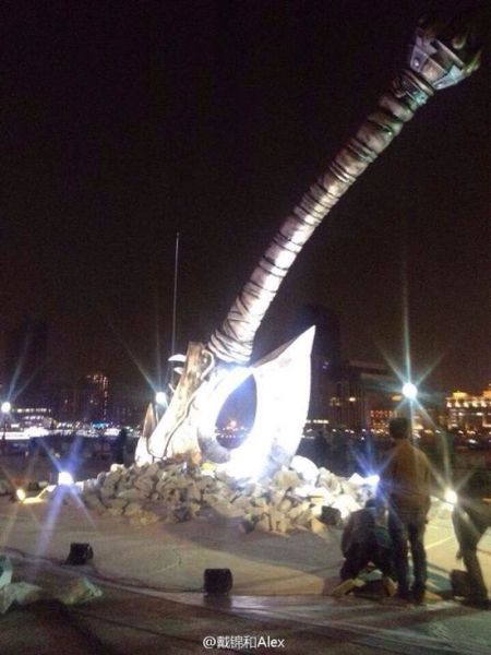 不知道大家还记得早前暴雪为了庆祝《魔兽世界》十周年和迎接"德拉诺之王"而制作的"血吼之斧"么,11月18日出现在陆家嘴的"血吼之斧"着实让不少魔兽玩家叫好。现在"血吼之斧"热度还未过,有着"带枪的魔兽"之称的《火瀑》(Firefall)也跟随其后,其主题雕塑现身上海乐方明珠之上。