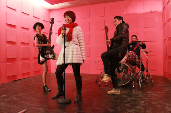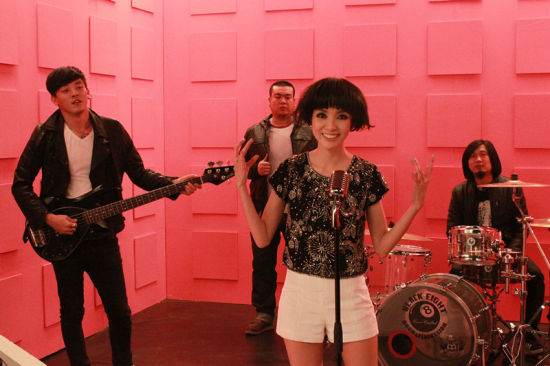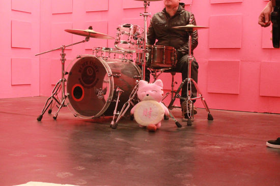 空闲时郭美美敲起架子鼓