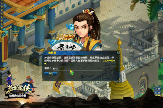 《盖世豪侠》中的特色玩法护花使者,是让玩家护送茶花的任务,上限是1000朵,目前最高的完成数量为850朵。不给力啊豪侠们,再接再厉吧!